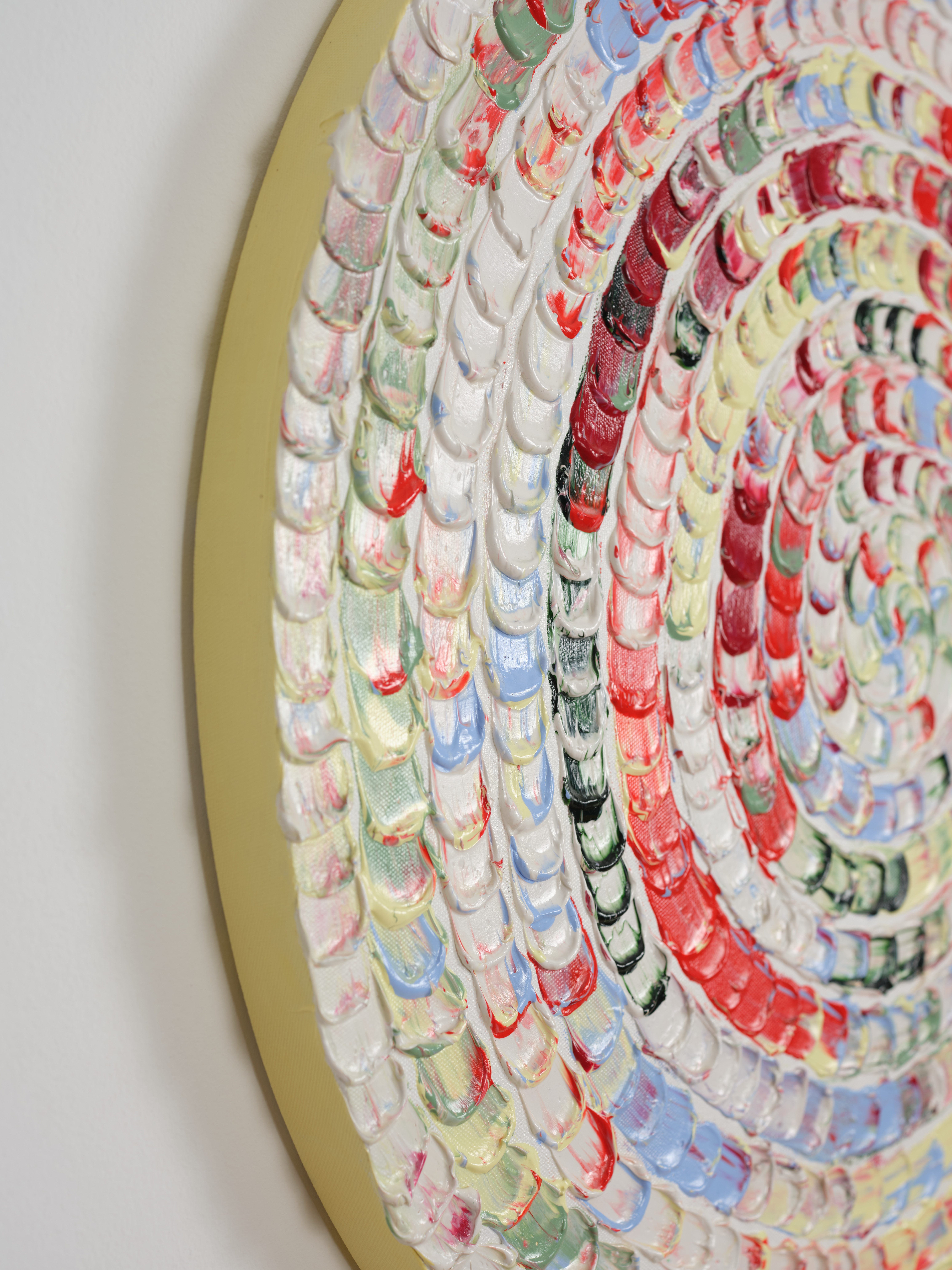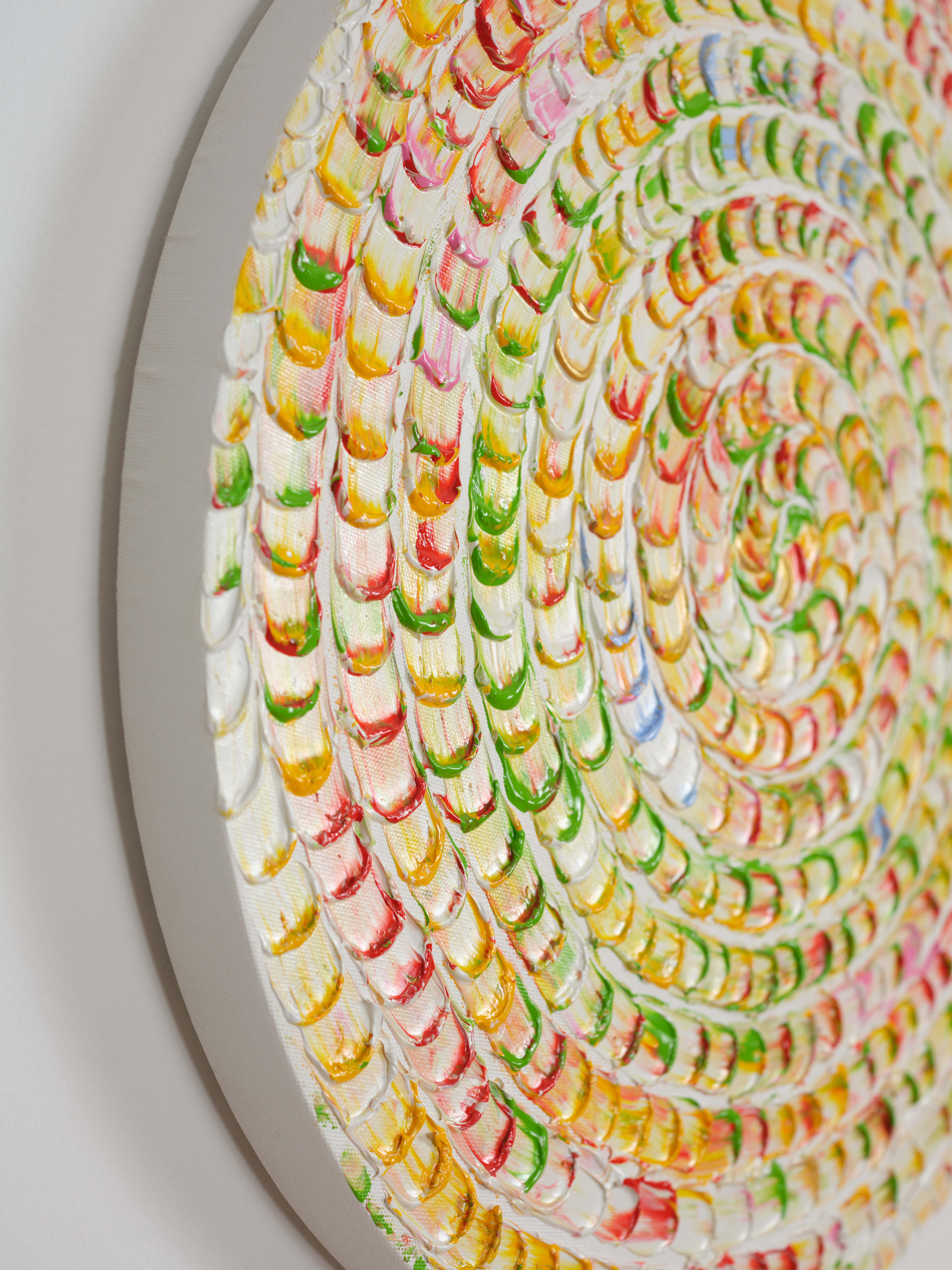 Joy: Spring Breeze, 2024, ø60 cm, Acrylic and relief paste on canvas